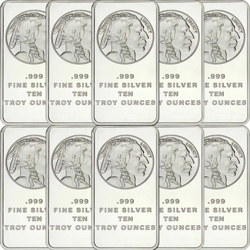 Created to replicate and celebrate the buffalo round, the 10 oz Silvertowne Buffalo Silver bar is an excellent way to stack your wealth in ounces.