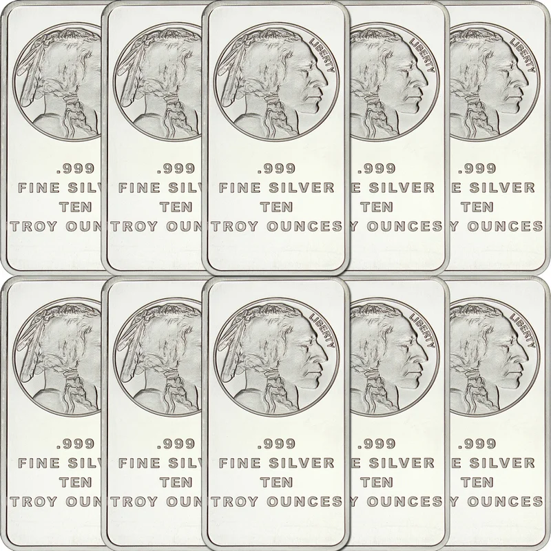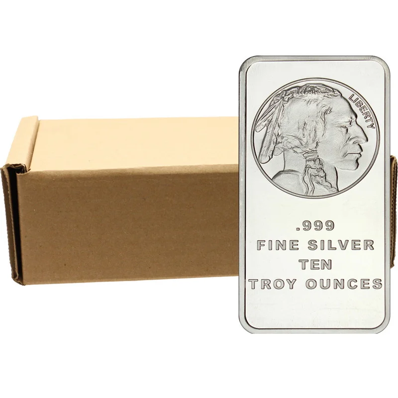 Created to replicate and celebrate the buffalo round, the 10 oz Silvertowne Buffalo Silver bar is an excellent way to stack your wealth in ounces.